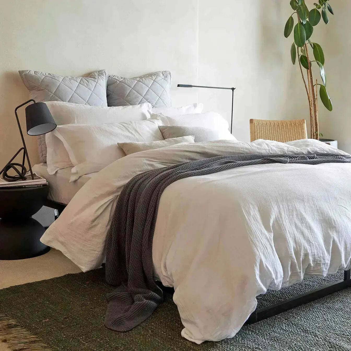Slip between our oh-so-soft organic cotton and drift off into a soothing night’s sleep. Made from two lightweight layers of gauzy cotton stitched together, the fabric has a subtle, tactile texture that feels wonderfully gentle against the skin. The airy construction naturally traps air, keeping you cool on warm nights and cosy when the temperature drops.