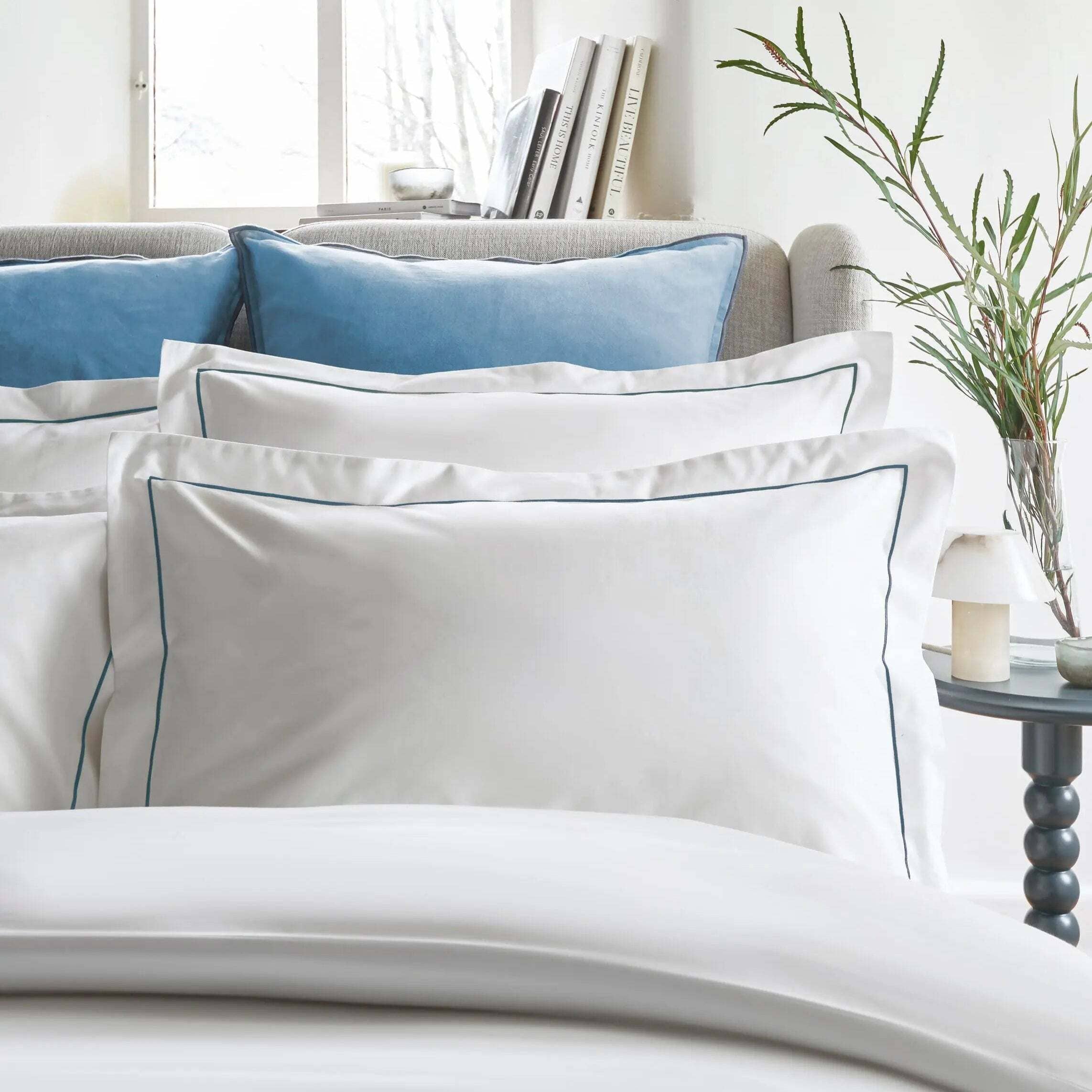 Expertly crafted for year-round ease, the breathable construction helps wick away moisture on warmer nights and retains cosy warmth when temperatures dip. Beautifully soft straight from the packaging — and even softer after every wash — they create a serene, pared-back setting for uninterrupted rest. Style with crisp white bedding or layer with tonal blues to elevate a contemporary, design-led bedroom.