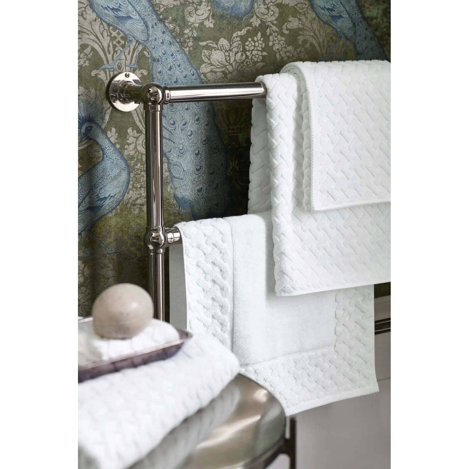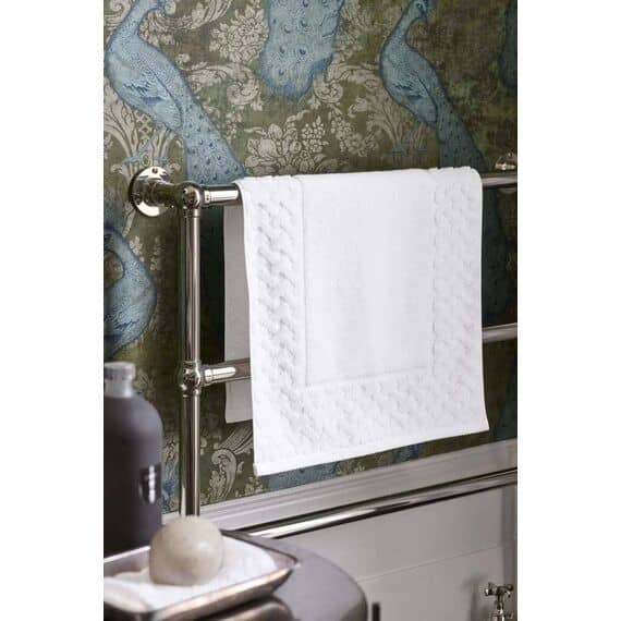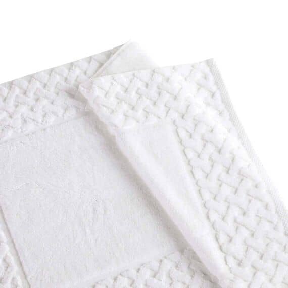 Complete the look and freshen all your bath time linens with the textured silkiness of the Christy Trellis Bat Mat White. Made to match the Trellis towel collection, the mat upgrades your bathroom aesthetic with the unique, signature trellis patchwork weave to invigorate the feet.