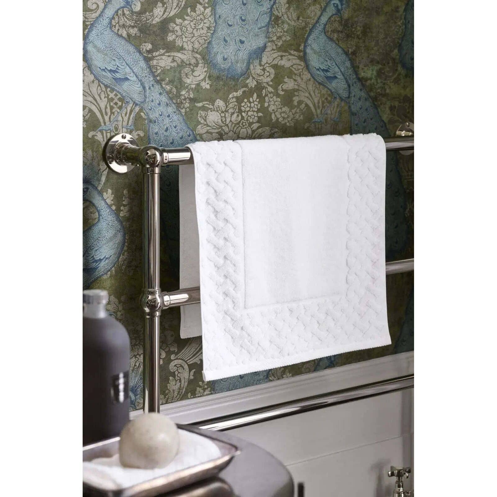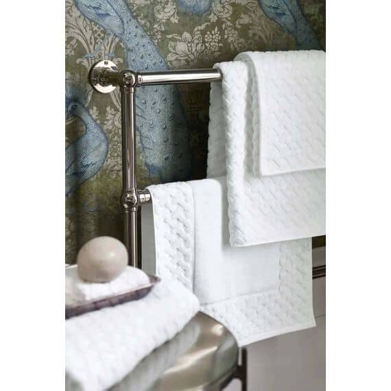 This Christy Trellis Bath Towel in White combines 60% Turkish cotton with 40% bamboo, offering a plush 625gsm weight for a truly luxurious post-bath experience.