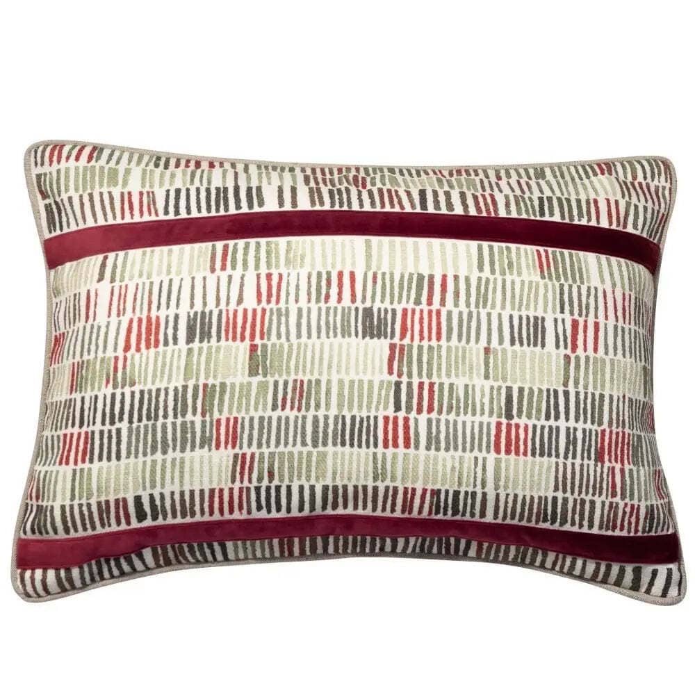 Malini Harrison Cushion. Earth Printed Lines With Velvet appliqué stripe. The soft velvet appliqué adds texture and a touch of elegance. It's the perfect addition to any room, providing both style and comfort.