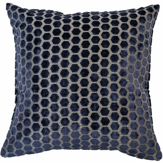 This stunning Malini Jorvik Large cushion boasts a beautifully textured cut navy velvet finish with a striking geometric hexagonal pattern. Its captivating design brings a timeless elegance to any room, and serves as an ideal accent, sofa or scatter cushion.
