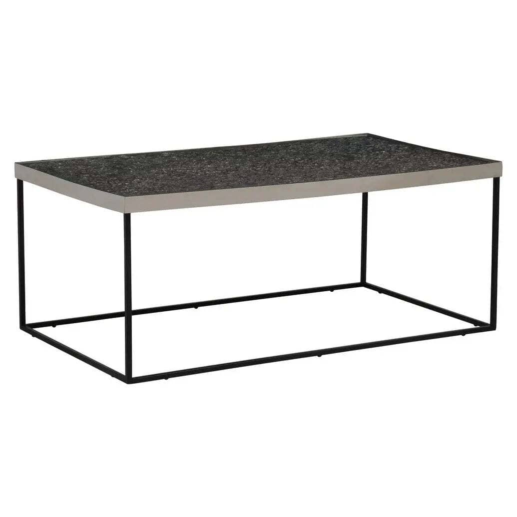 The Aloka Rectangle Coffee Table in Silver and Glass introduces modern elegance and architectural flair to your living space. A polished silver-finish frame supports a clear glass top, creating a light, reflective surface that enhances the sense of space. The bold black metal base with interconnected legs forms a striking geometric silhouette, balancing strength with sleek sophistication.