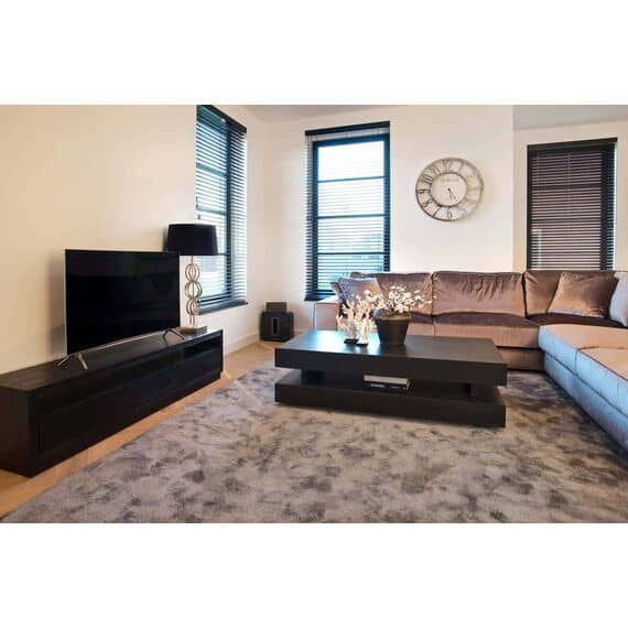 The Richmond Interiors Oakura Black Coffee Table is a bold statement of modern design and craftsmanship. Expertly made from luxurious black oak veneer, this H-shaped coffee table combines a sculptural form with refined simplicity, creating a sleek focal point for contemporary living rooms. Its deep, matte black finish brings both warmth and sophistication to your interior.