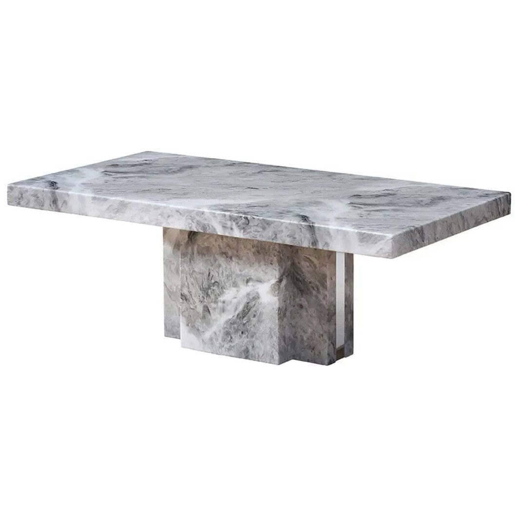 Transform your living space with the Savanno Grey Marble Coffee Table, an embodiment of modern sophistication and luxury craftsmanship. Featuring a sleek grey marble tabletop supported by a matching pedestal base, this table exudes seamless elegance and balanced design.
