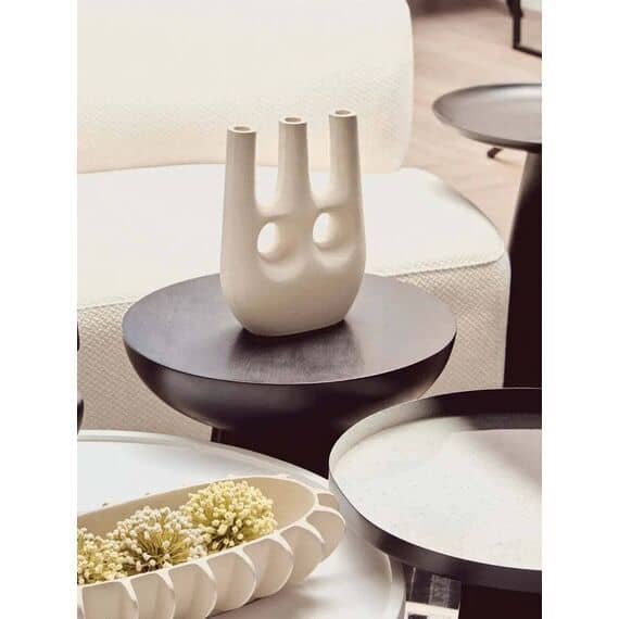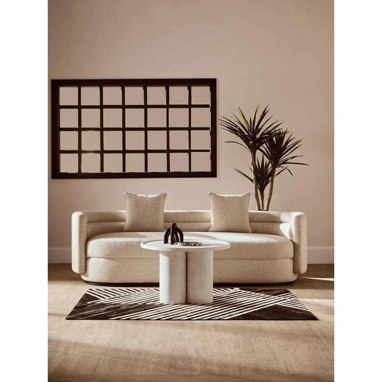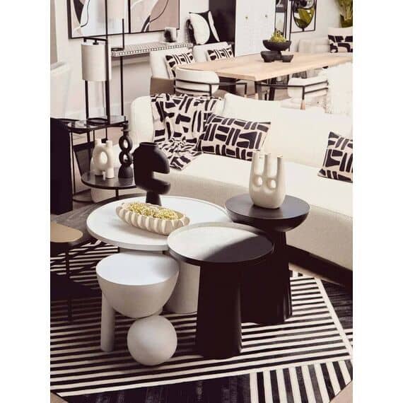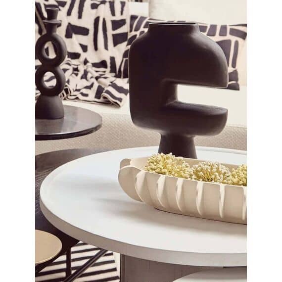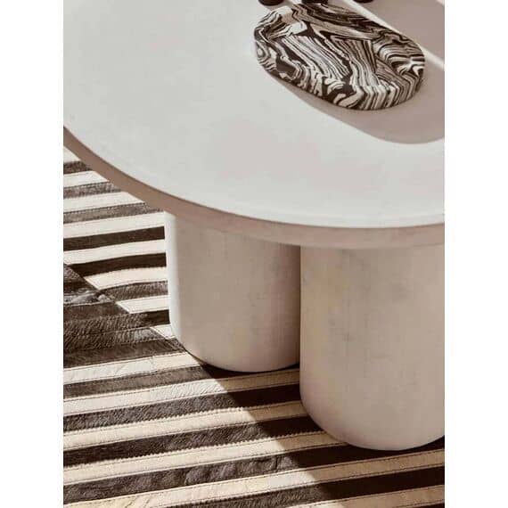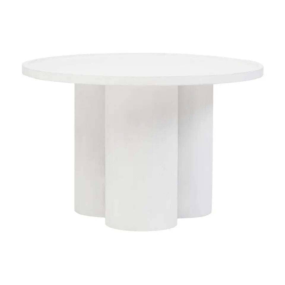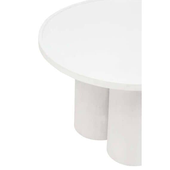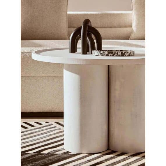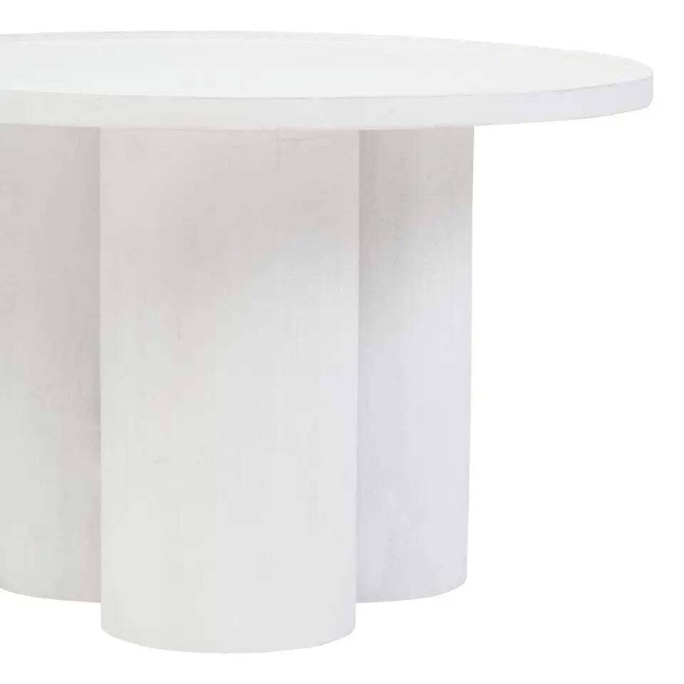 A fusion of form and function, this eco-friendly mango wood coffee table features a gracefully curved base forming a pillared design. The whitewash finish highlights its natural texture and complements the simplicity of this handcrafted masterpiece.