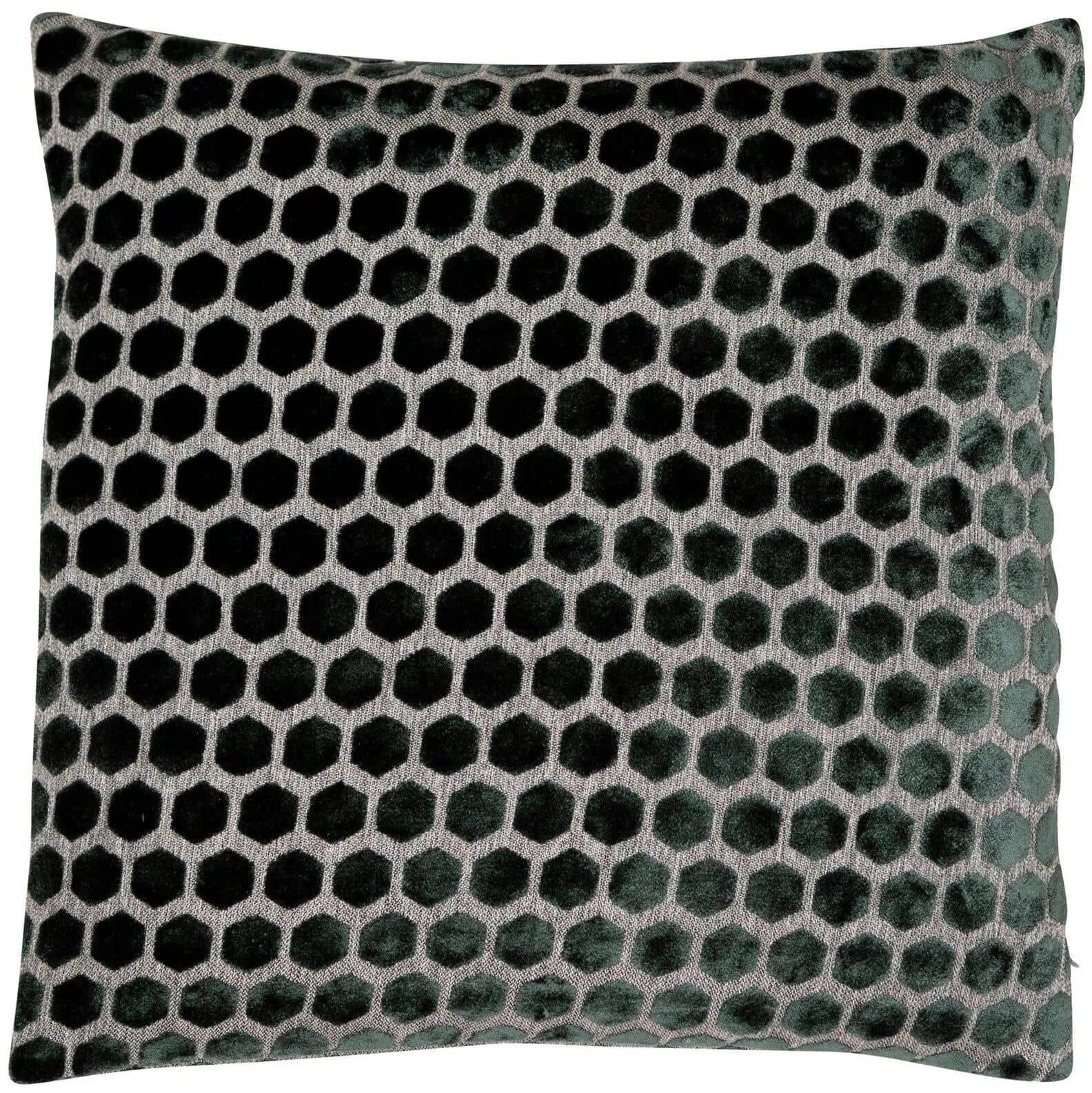 A gorgeous large textured cut velvet cushion with a pine green geometric hexagonal pattern.