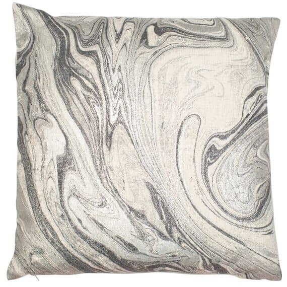 This contemporary cushion features an elegant marble print swirling around on a cream background, printed on a mix of linen and cotton fabric.