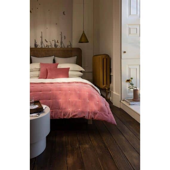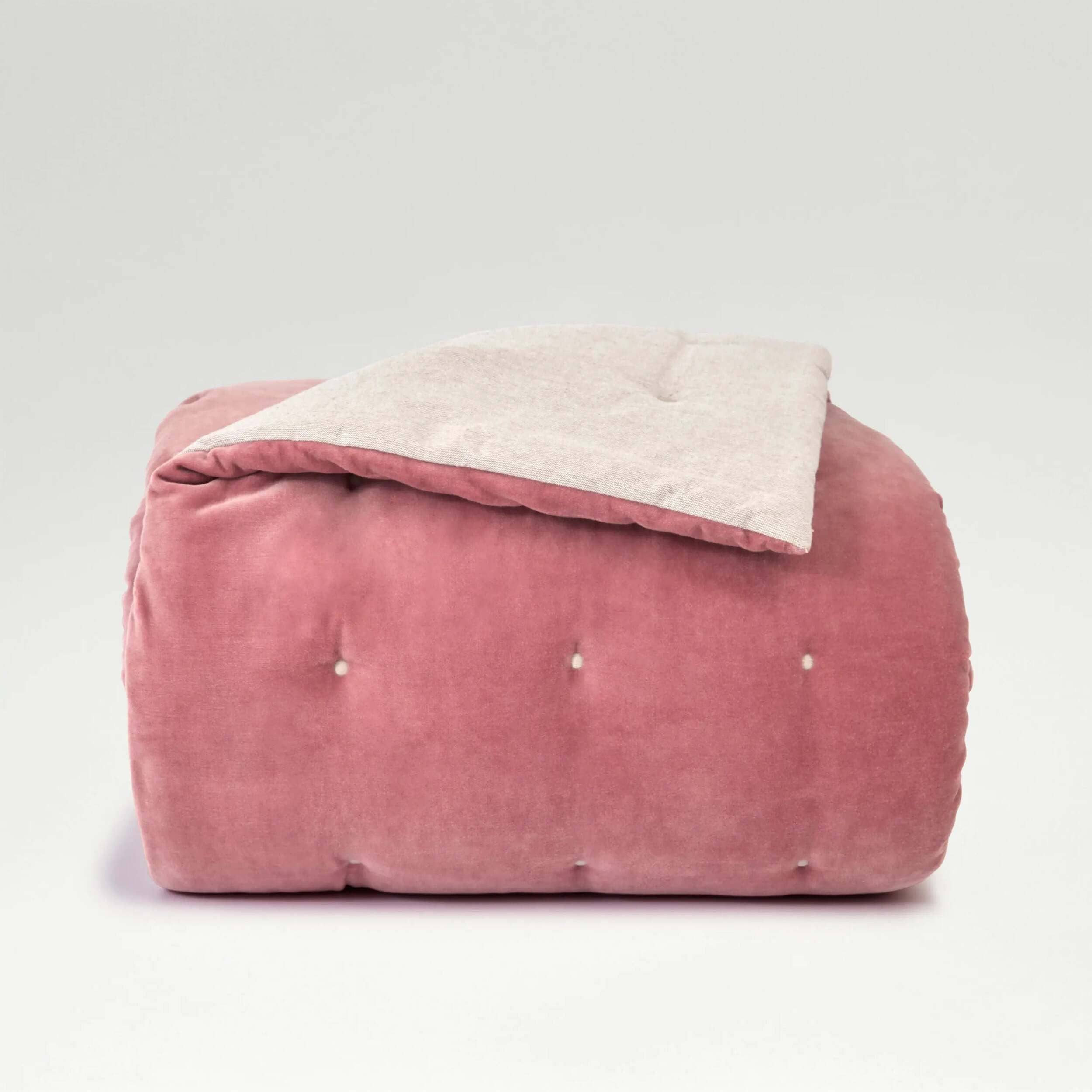 - This beautiful collection of quilted throws and coordinating cushions uses 100% cotton velvet, with a 100% cotton chambray reverse.